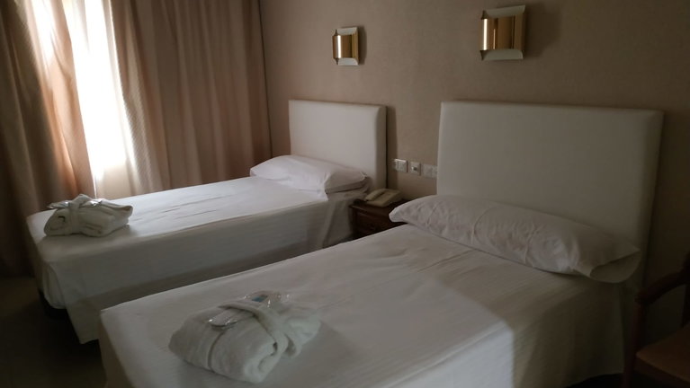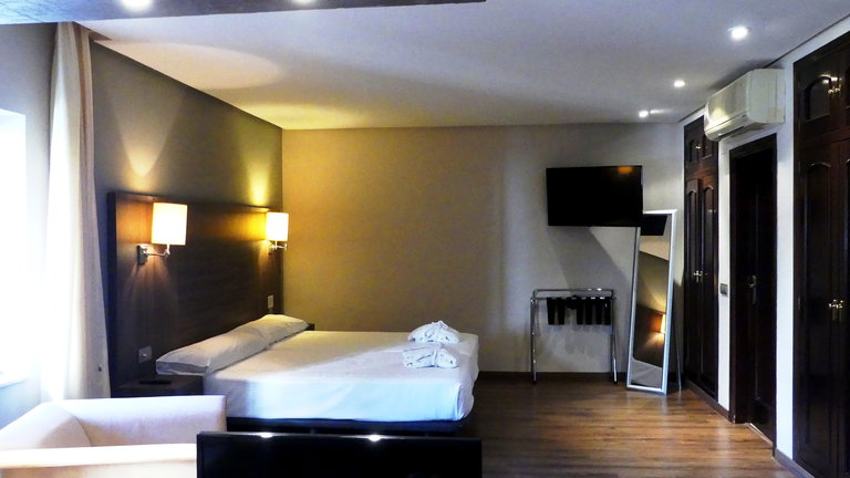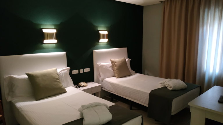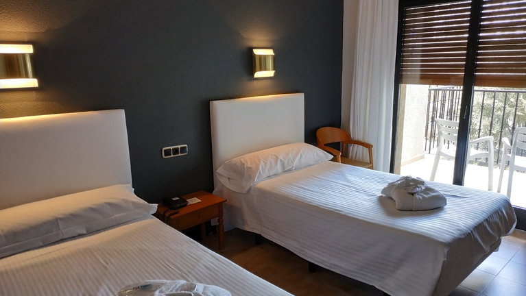Amplia habitación-salón con terraza, climatización, teléfono, televisión, nevera y WIFI. Baño dividido en dos partes con bañera grande, dos lavabos, bidet, inodoro y secador. Si la edad del niño está entre 4-8 años hay un descuento. Consulte precio con el balneario.Si vienen con un niño de 0-3 años, consultar en el Balneario si hay disponibilidad de cuna.