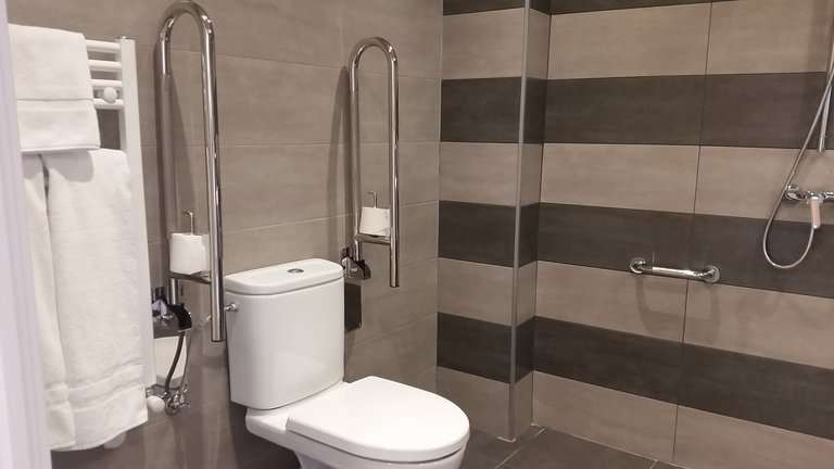 1 habitación adaptada+1 habitación normal y baño adaptado, televisión, nevera, secador