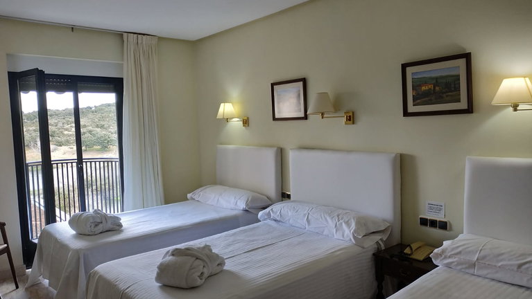 Habitación triple con baño. Todas ellas equipadas con nevera, televisión, secador.